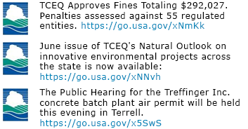 Icons: Tweets (Example?)Screenshot of three TCEQ tweetshttps://www.tceq.texas.gov/downloads/images/homepage/icons-tweets.png/viewhttps://www.tceq.texas.gov/downloads/images/homepage/icons-tweets.png/@@images/image-1200-39b5753f3e5a884617fb4618a14c66cf.png?v=image