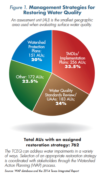 Since 1998, the TCEQ has been developing TMDLs to improve the quality of impaired water bodies on the federal 303(d) List, which identifies surface waters that do not meet one or more quality standards. In all, the agency has adopted 279 TMDLs for 196 water bodies in the state.