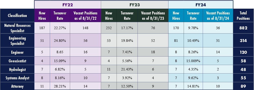 Looking forward, retention is a strategic objective for TCEQ in the fiscal 2025-2026 biennium. As Texas grows economically and becomes home to more companies, the STEM-based labor market will remain highly competitive. Key initiatives for TCEQ in the next biennium will focus on adding resources to ensure clean air, clean water, and the safe management of waste, as well as ensuring salaries are competitive within the state.