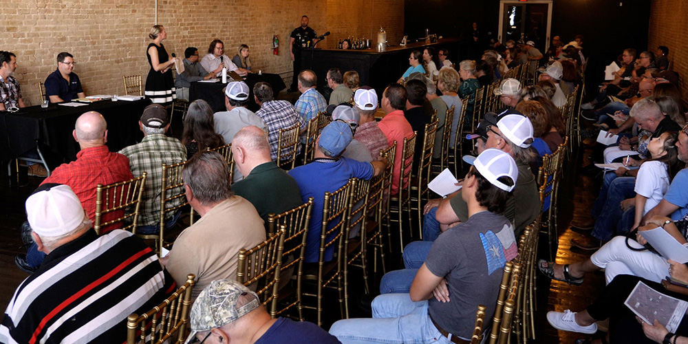 In July of 2024, TCEQ held stakeholder meetings to solicit public input on the development of changes to the permitting public participation rule in 30 TAC Chapters 39 and 55 (Rule Project Number 2024-003-039-LS). One meeting was hybrid, with TCEQ regional offices in Austin, Midland, and Harlingen having rooms available to provide an additional option for the public to participate in the meeting, plus an online Zoom option. In-person meetings were also held in Arlington and Houston. Spanish language interpretation or assistance was available for all meetings, including the hybrid Zoom meeting.