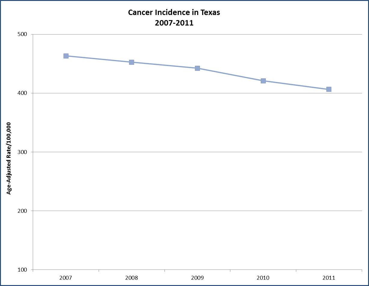 Cancer Incidence in TexasGraph of the Cancer Incidence in Texas from 2007-2011. https://www.tceq.texas.gov/toxicology/cancer-incidence-in-texas/viewhttps://www.tceq.texas.gov/toxicology/cancer-incidence-in-texas/@@images/image-1200-c13c45fb1a9ca23e273e829f640f041e.jpeg?v=None