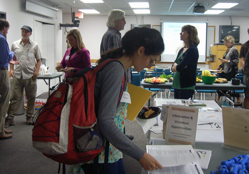 A stakeholder examines the information for volunteers at the October 2013 Open House.