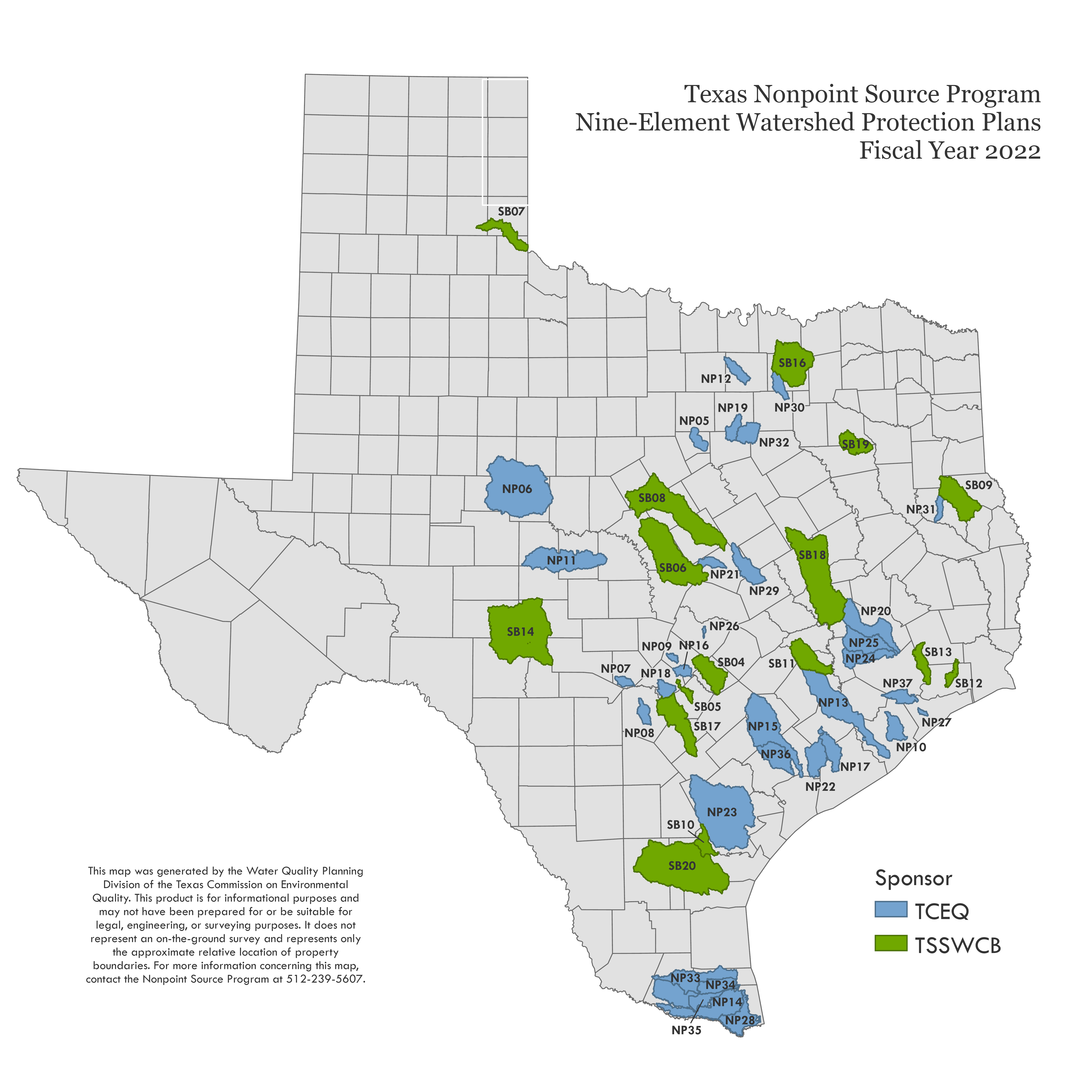 The NPS Program administers federal funding to help watershed stakeholders address nonpoint sources of water pollution. The program is jointly administered by TCEQ and the Texas State Soil and Water Conservation Board (TSSWCB)